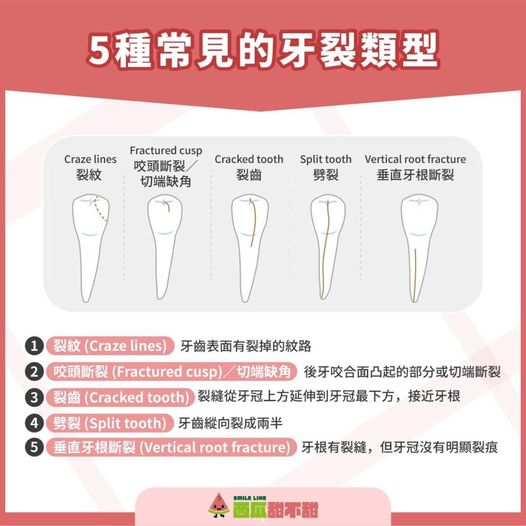 牙裂是指牙齒因外力、咬硬物、結構老化等因素出現裂縫,輕則無感,重則影響牙神經與牙根結構。